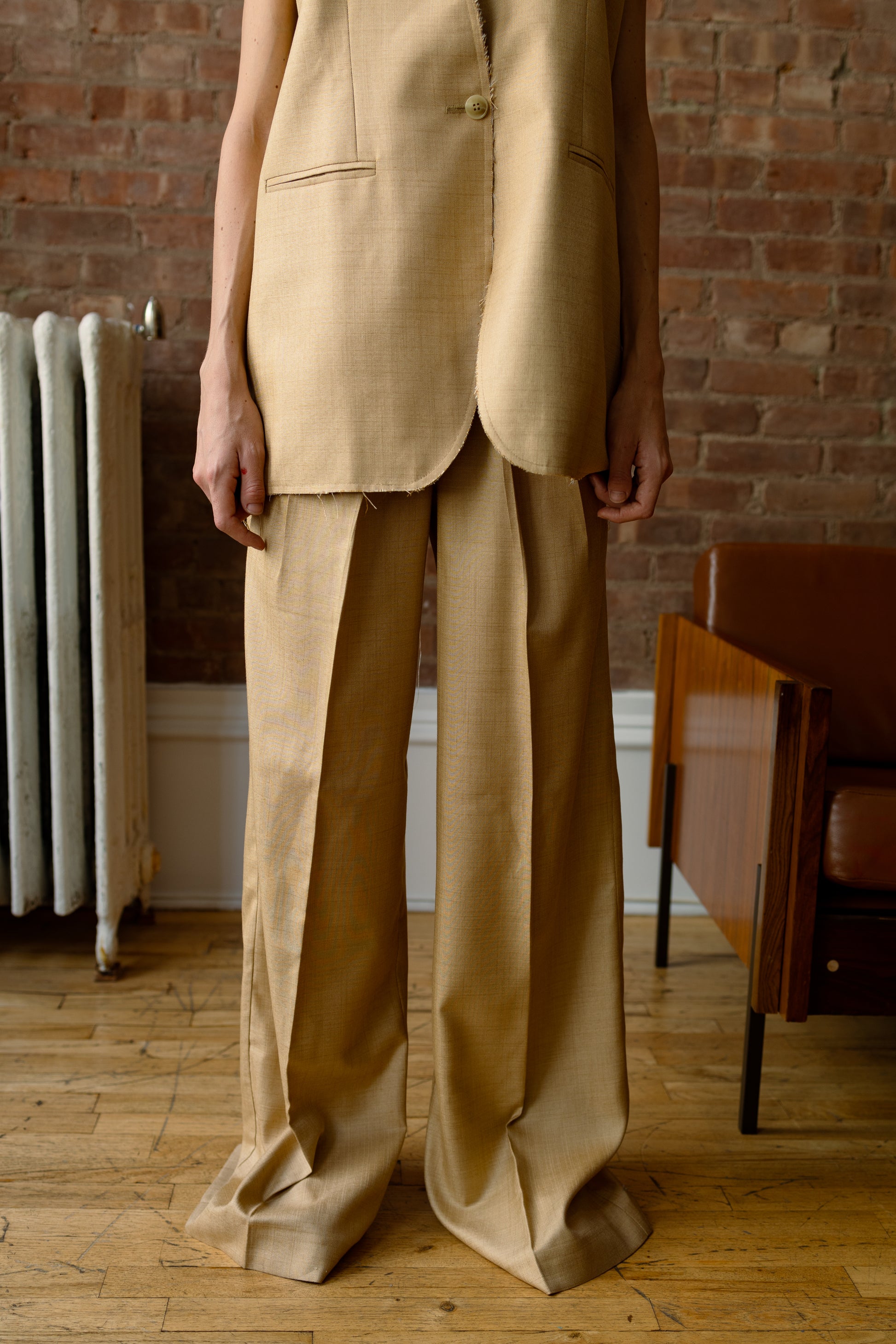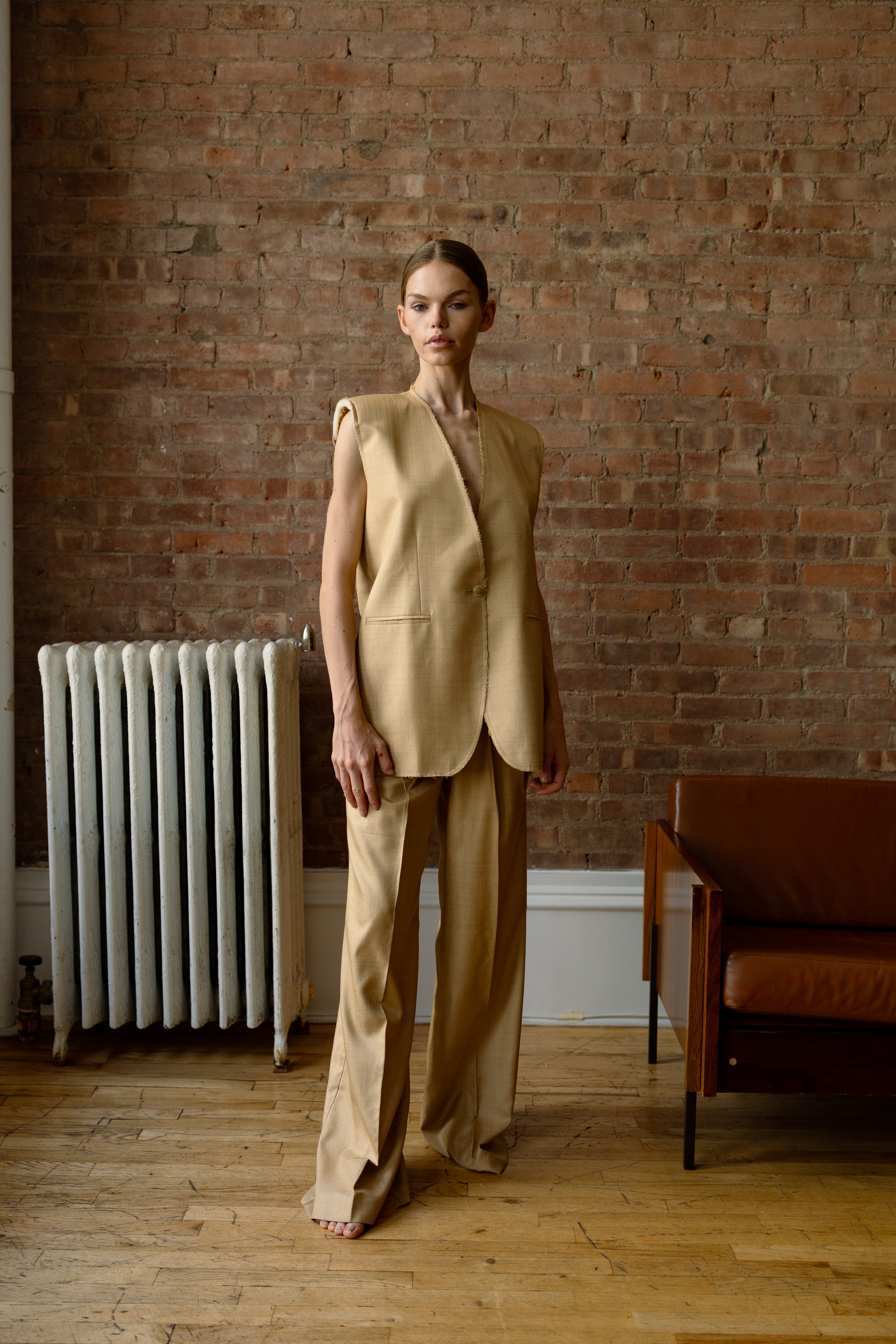 Es un diseño slim fit confeccionado en lino y poliéster, que ofrece una silueta estilizada y versátil. Su tono Ochre le da carácter y lo hace ideal para outfits de día a noche. Combina comodidad y precisión sastrera en una pieza elegante que resalta la figura sin perder ligereza, perfecta para climas cálidos.