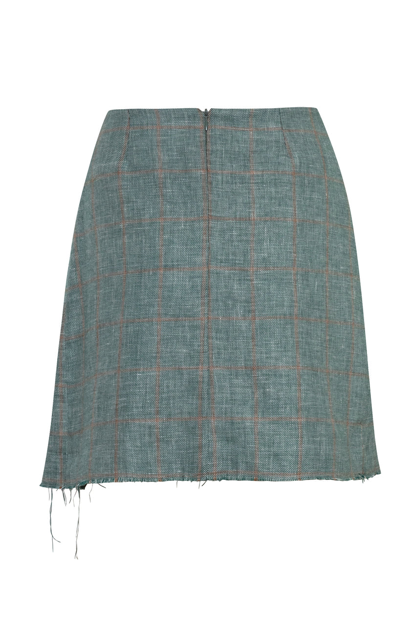La falda Santa María refleja la tradición sartorial con un diseño de cintura definida y estructura femenina refinada. Confeccionada en lino y lana italianos, tiene un acabado impecable y sofisticado, ideal para atuendos formales o de oficina. Disponible en el exclusivo patrón Sartorial Drawing Green, es una prenda que equilibra elegancia clásica y modernidad.